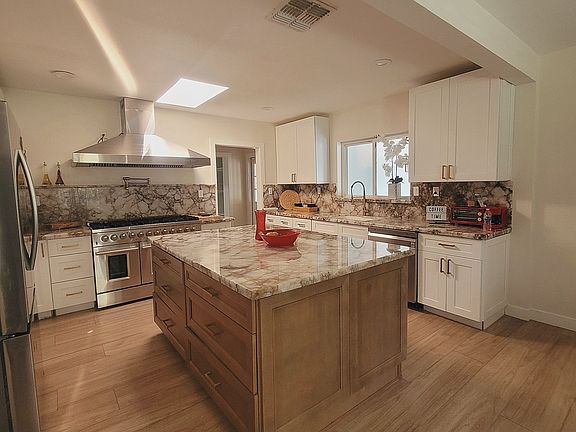 Fully remodeled 4 bedroom, 3 bath home in a safe, family-friendly neighborhood. Features include two spacious master bedrooms, a gourmet kitchen with granite countertops, abundant cabinet and counter space, and a separate laundry room with mini split. No carpet throughout the home for easy maintenance. Large lot with built-in BBQ and full irrigation system, perfect for outdoor entertaining. Includes a 2-car garage and thoughtful layout ideal for multi-generational living or growing families.