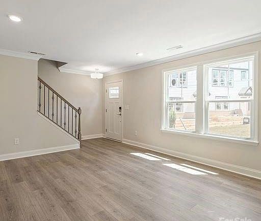 Welcome to 4028 Hidden Oaks Drive, a stylish three-story townhome in the sought-after Hudson Oaks community of East Charlotte. This 3-bedroom, 2 full and 2 half bath residence offers 2,075 sq ft of modern comfort with a farmhouse-inspired exterior and thoughtfully designed interiors. Open-concept main level features durable laminate wood flooring, spacious living room with cozy gas fireplace, and gourmet kitchen with Energy Star stainless steel appliances, gas cooktop, wall oven, quartz countertops, a large center island, and a walk-in pantry. Adjoining dining area opens to a private balcony—perfect for morning coffee or relaxing evenings. Upstairs, the primary suite includes a spa-like bath with dual vanities, a garden tub, and a generous walk-in closet. Two additional bedrooms share a well-appointed full bath, that round out the upper level. A main-level flex space provides versatility for a home office, gym, or media room. Additional highlights include a laundry room on the upper level, an attached two-car rear-entry garage, and energy-efficient systems throughout. Residents enjoy low-maintenance living with lawn care and irrigation included! Conveniently located near Plaza Midwood, and Uptown Charlotte, this home combines modern style, efficiency, and location in one perfect package.