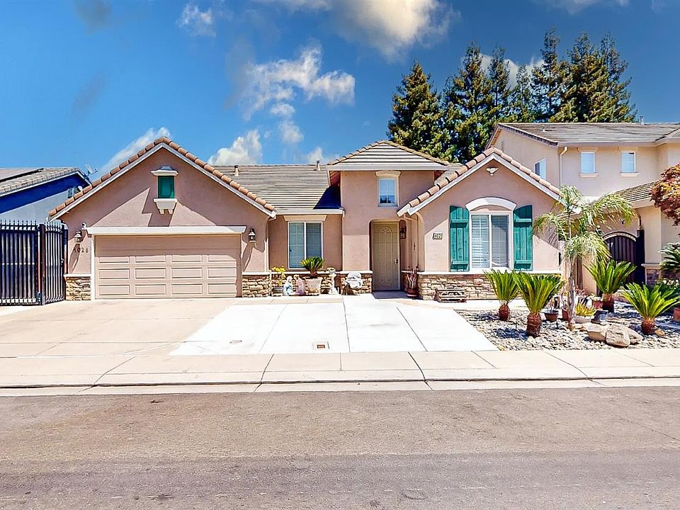 This stunning single story 4 bedroom, 3 Full bathroom residence you will call HOME! Excellent North Modesto location! One bedroom/full bath away from other rooms, great for guest or in-laws. 2567 sq ft, Huge Living and Dining combo room. Open concept Kitchen with breakfast area & Separate Family room. Soaring ceilings, elegant plantation shutters, built-in media cabinet, custom storage cabinets, gated RV parking, Low maintenance front & back yards with patio and a shed. Gorgeous luxury vinyl plank floors and tile. Primary bedroom has 2 separate vanities, crown molding, and access to back yard. Laundry has sink, cabinetry, and counter. Located in one of the most desirable neighborhoods in Modesto, is close to freeway access, shopping centers, Kaiser, and all amenities. This property offers both luxury and convenience in a vibrant community. Seller offering concessions.