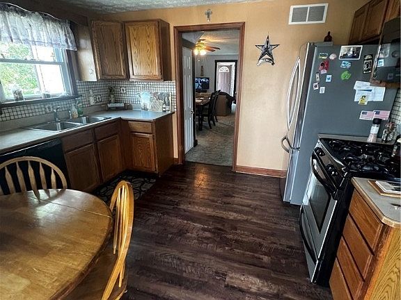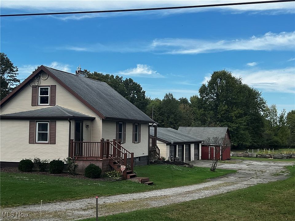 Welcome home~this cozy cape cod offers 2 acres and a large 4 car garage (30 x 48) with upstairs storage, along with a large barn (23' x 23'). Electric was recently (9/2025) upgraded to 200 amp service. Newer water tank in 2022. Newer kitchen floor in 2020, hard-wired for security system with 3 cameras (currently not subscribed), windows were new in 2004. Furnace is 97% efficient.