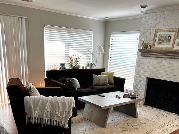 Inside, you'll find luxury vinyl plank hardwood floors throughout, crown molding, and Corian countertops that bring a touch of sophistication to every room. The open living area features a cozy gas fireplace and flows effortlessly to a large private backyard and patio ideal for entertaining or relaxing outdoors.