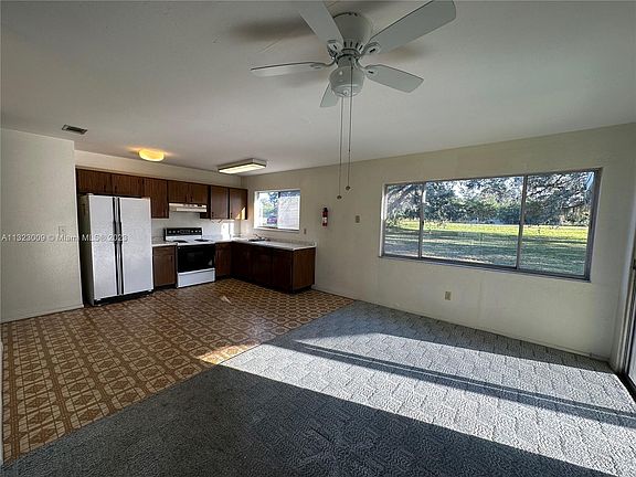 PORT LABELLE HOME INCLUDES LARGE KITCHEN AREA AND LIVING/DINING ROOM AREA. This home also has screened back porch which oversees lovely back yard plus green belt for plenty of privacy; the screened porch leads to garage with laundry area. The home has three large bedrooms and two baths and plenty of closets for storage. The roof is shingle and has been inspected and the electric panel has been replaced with a brand new insurance company approved panel. Home is located in Port LaBelle, enjoying a HOA that offers a recreation area complete with swimming pool for a small annual fee. Home, on a 1/4 acre home site, enjoys the convenience of Port LaBelle water and sewer. This is an area that was never without power during Hurricane Ian. ENJOY THE BEST OF ALL WORLDS HERE!