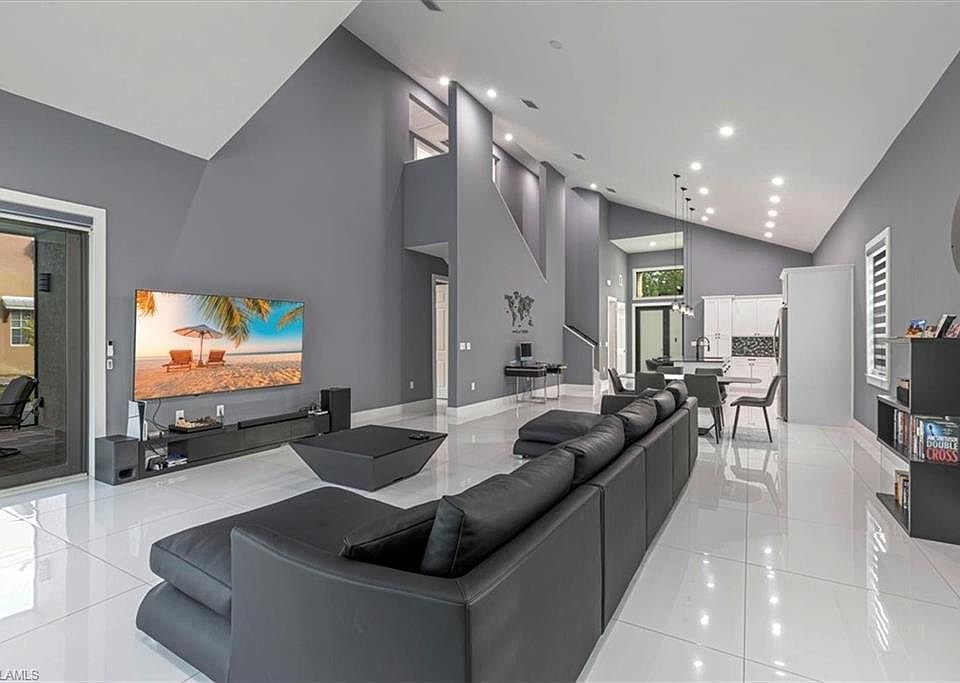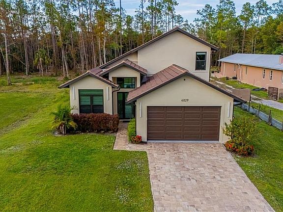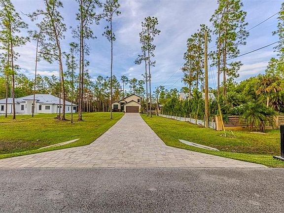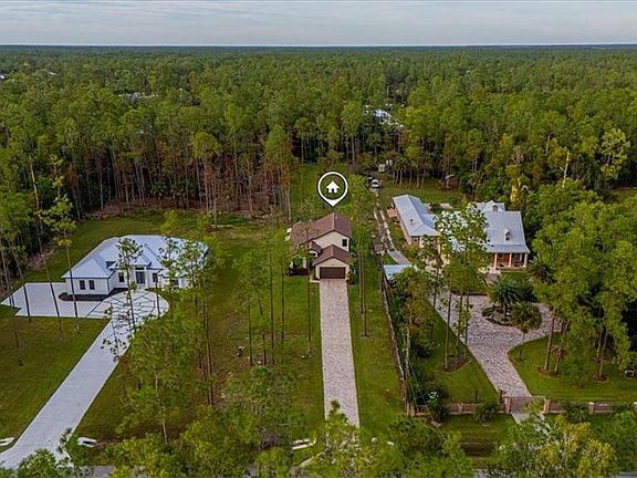 Experience the perfect blend of modern design and serene privacy in this stunning newer construction, 3-bedroom plus a Den, 3-bath, two-story pool home situated on over an acre of land in highly sought-after Golden Gate Estates. From the moment you arrive, you’ll be captivated by the home’s sleek architecture, expansive paver driveway, and lush surroundings that back up to a peaceful preserve for ultimate privacy. Inside, soaring ceilings, and polished porcelain tile floors create an open and airy atmosphere filled with natural light. The gourmet kitchen is a showstopper—featuring custom white cabinetry, quartz countertops, a striking hexagon tile backsplash, a massive island with waterfall edges, and top-of-the-line stainless steel appliances—perfect for entertaining or everyday living. The open-concept great room flows effortlessly to the outdoor living space, where you can relax by the sparkling pool and enjoy tranquil views of your oversized backyard and the natural beauty of the Estates. The spacious owner’s suite offers a luxurious retreat with a spa-inspired ensuite bathroom and generous closet space. Each additional bedroom provides comfort and flexibility, ideal for family, guests, or a home office. Additional highlights include a two-car garage, impact windows and doors, modern finishes throughout, and ample room for a guest house or additional storage building on your acreage. Located just minutes from shopping, dining, top-rated schools, parks and Naples’ world-famous beaches, this home combines contemporary style with the peaceful lifestyle of Golden Gate Estates. Free One Year American Home Warranty comes with this home!