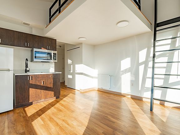 We offer studios and lofted apartments with an in-unit bathroom, closet space, fridge, microwave, and a cooktop. These newly built studios feature large double-pane windows shining natural light, vinyl hardwood flooring, and new appliances. Our stunning rooftop deck has mountain, water, and city skyline views, along with a community BBQ and rooftop enclosed study room with free Wi-Fi open to all tenants. You can use secure bike storage & storage lockers when you'd like.