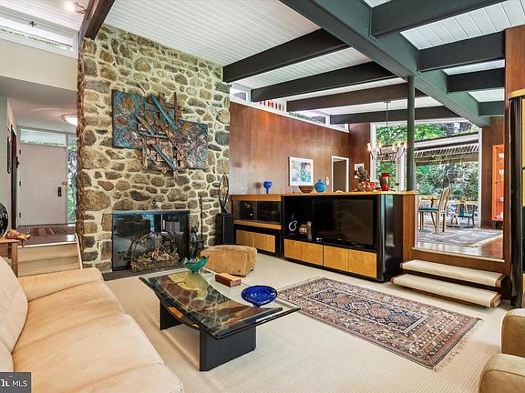 Great NEW PRICE! Another Mid-Century marvel located on one of Philadelphia's most sought after cul-de-sacs - Apalogen Road! Be sure to catch the virtual tour icon located on your screen. This East Falls modern masterpiece is situated on over an acre of land, in a park-like setting, affording the benefits of both privacy and convenient access to all that the city has to offer. Lovingly maintained and updated by the current owner, this comfortable family home is spacious and features sun lit vistas from every room. A beautiful primary suite on the main level boasts a balcony for relaxing, complimented by a luxurious marble bathroom with two separate sinks and vanities, whirlpool soaking tub, free standing shower, and huge walk-in closet. Two more bedrooms on the same level are illuminated from bright picture windows, and served by a generously sized bath, with double sinks and granite counter tops. Architecturally stunning living room with natural stone walled fireplace, alongside dining room replete with solid walnut, both blending in an open, yet delineated, floor plan for gracious entertaining. Breeze in and out of the adjacent kitchen which boasts gas cooking with a Viking range and exhaust hood, and opens to a glass-walled family room which currently doubles as a home office. Speaking of cooking, both areas lead to a large deck with a custom made wood-fired pizza oven overlooking the front yard, which is well set back from the private road, and features a lovely raised koi pond. On the walk-out lower level, which is open to daylight, you will find a recreation/exercise room with a second stone walled fireplace, full bath, fourth bedroom, and a windowed utility room that is suitable for a home workshop. Adding to the mix is an over sized 2-car garage with interior access and laundry room. With a 12-minute drive into Center City, 4033 Apalogen Road is at the epicenter of recreational opportunities along the Schuylkill River, Wissahickon Creek, and Forbidden Drive. While located in a quiet and serene neighborhood, you will be at the convergence of major highways - I/76Expressway, Route 1/City Ave, both River Drives and Henry Avenue - all just a stone's throw away. East Falls train service, and the educational institutions of Penn Charter, Germantown Friends, and Thomas Jefferson University are all close by. This is a very special property that is not to be missed!
