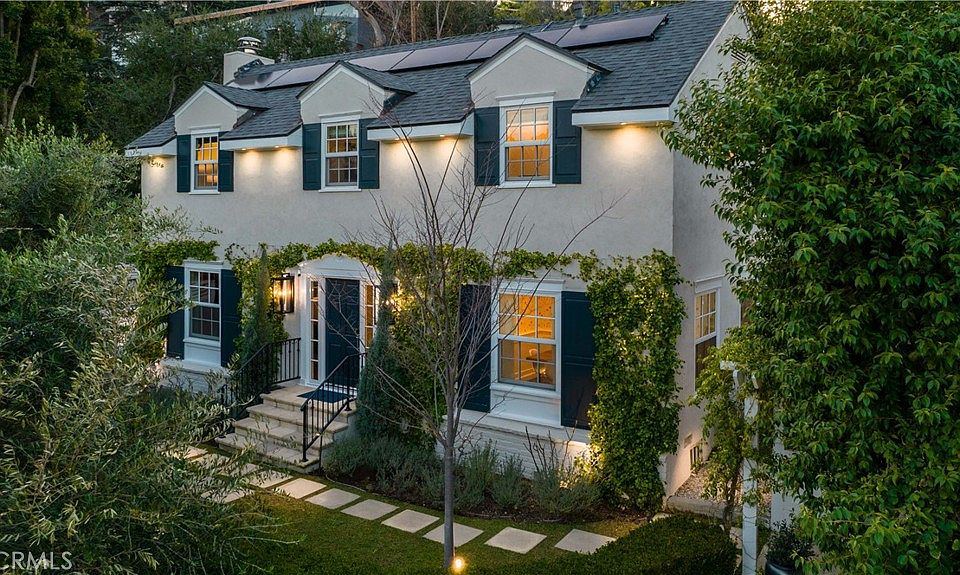 Charming traditional home, recently remodeled, in prime Sherman Oaks south of Ventura Blvd., with stunning views! Featuring 3 BR – 2.5 BA, dining room, plus an office/gym in over 2,400 sq ft on a gated property perched up off the street, lushly landscaped with olive trees and mature ficus. Spacious formal living room features floor to ceiling wainscoting, crown molding, and center fireplace. Recently remodeled kitchen features custom cabinetry, stainless-steel Viking appliances, Caesarstone countertops, and adjacent breakfast banquette. Family room with wainscoting, crown molding, custom built-ins, and fireplace leads to private patio with water feature, and terraced turfed area with mature ficus trees and accent lighting. Spacious primary suite features crown molding, primary bath with custom tilework and free-standing soaking tub, and cozy covered deck overlooking lush yard. Home is completed by hardwood floors throughout, extensive landscape lighting, new solar panel system, Lutron lighting, EV charging, and much more.