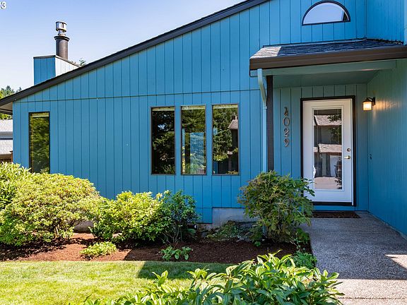Cool Custom Contemporary in Premier Southeast Eugene Location! Back on the market due to no fault of the home or seller (change in buyer situation)...amazing opportunity for you. A dream for gardening and entertaining, the generously sized & light-filled living spaces wrap around and have access to a secluded central courtyard. Remodeled kitchen with custom bamboo cabinetry, granite countertops, pantry and eating bar serves as the center part of the home. Enjoy the gorgeous setting from the living room (featuring a gas fireplace insert) and adjacent formal dining room. The main level owner's suite with updated bathroom features more glass doors leading to the courtyard. Two additional bedrooms and another remodeled bathroom on the main level plus a sun-bathed loft upstairs with vaulted ceilings, double venting skylights, storage nooks and sink has endless possibilities as an art studio, media room and more! The large and private, fully-fenced backyard has a deck with built-in bench seating. The mature landscaping, lush foliage, flowering bulbs, underground sprinklers and water feature add to the relaxation and enjoyment. Brand new roof, central heat and air, 2-car garage, recent inspection on file, excellent condition overall. All this in a sweet neighborhood community with very little traffic, close to schools, shops, parks and trails...welcome home!
