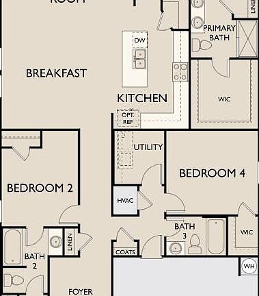 Meet the Hartwell, where thoughtful design meets effortless everyday living. This four-bedroom home balances privacy and togetherness with a split-bedroom layout. Two secondary bedrooms share a convenient Jack-and-Jill bath at the front of the home, while a fourth bedroom--ideal for guests or a home office--sits off the main hallway with its own walk-in closet and nearby full bath. The open-concept living area is made for connection, with a generous kitchen island that anchors the space and flows into the dining area and family room. From there, step right onto the covered patio--perfect for outdoor meals or evening unwinding. The rear-positioned primary suite offers a true retreat with a private ensuite and an oversized walk-in closet.