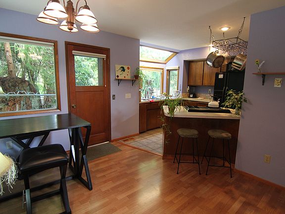 Welcome to your own creek side home in town. A brisk creek separates the garage from the home by a Trex deck bench-lined bridge. A spiral wood staircase, sauna, woodstove, and a 2-story library with built in ladder are just a few features in this unique, custom-built home. A spacious 1,490 square feet with 3 bedrooms and 2 baths. Don't miss out! Completely re-built and extended roof, updated electrical, updated plumbing, and re-trenched drainage in 2013. Neighborhood Description Beautifully forested, excellent schools and educated polite neighbors