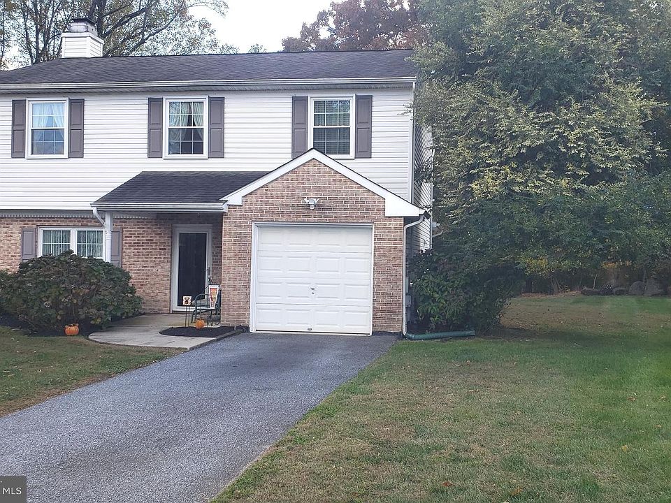 Approximately 2,000 Square Foot 3 Bed Room 2 Bath Room Twin Located in the Secluded Yorktown Community Featuring a 1st Floor Powder Room, Fireplace, Cooled & Heated Year Round Sun Room, Multiple Vehicle Parking Driveway Leading to a Garage and Serene Views of the Back Yard and Natural Open Space ! ALSO > 1st Floor : Living Room with 2021 new front Windows, chair rails and brick Gas powered Fireplace leads to a Dining Area with chair rails and ceramic tiled floor which joins the modernized Kitchen including a Whirlpool Refrigerator, Whirlpool Quiet Partner Dishwasher, Emerson Microwave Oven, Whirlpool Stainless Steel Gold Series electric Range and Double Oven with an exhaust hood and light, Stainless Steel Basin with an overhead light, Disposal, spacious Countertop Work Stations all with multiple Outlets, double sized Pantry Closet, Ceramic tiled floor, chair rails and fan light which enters into a Sun Room that has 3 sets of double sliding doors and the priceless convenience of a 1st floor Powder Room. Hallway with a Utility Closet has the 2010 Trane Gas house Heater with Central Air, double Coat Closet, inside access to a Garage with overhead storage shelves . Enclosed Laundry Room with Speed Queen Commercial Heavy Duty Super Capacity Plus 2 Speed washing machine, Bradford White 50 gallon Gas Water Heater, Maytag Oversize Capacity Quiet Series Heavy Duty Auto Dry Control 7 Cycles gas Dryer and lots of storage space including shelving. 2nd Floor : extra large Main Bed Room with a fan light and an En Suite Bath Room having a Fiberglass tub and shower, oversized vanity and also includes a Linen closet, a Walk-In clothes closet and tiled floor. Hall Linen closet. 2021 Hall Bath Room # 2 with fiberglass tub and shower. Bed Room # 2 with a double closet and fan lite . Bed Room # 3 with a single closet and fan lite. ALSO : minutes away from Route 491, Interstate 95 and Sales Tax Free Delaware State.