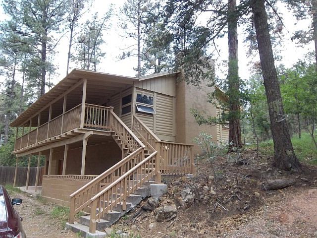 Really cute log sided cabin close to the Upper Canyon. Beautiful wood vaulted ceilings throughout. Fully furnished as viewed including linens and dishes, pots and pans, etc. Large covered deck with swing to enjoy the cool pines. 24 x 24 garage on street level, all of the living area is upstairs on the second level. Convenient to everything. Seller is licensed NM Realtor. BRING OFFERS! Trades considered. Classic cars NOT included.