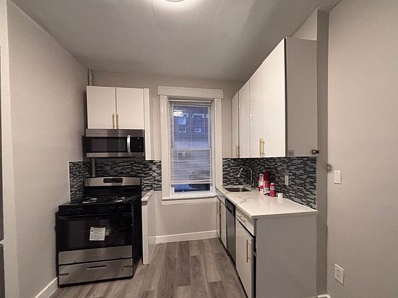 Step into this beautiful two-bedroom apartment that offers a perfect balance of style and comfort. The modern kitchen features sleek white cabinetry, high-end finishes, and stainless steel appliances, including a dishwasher and microwave. Gorgeous hardwood floors flow throughout the apartment, complemented by a contemporary tiled bathroom designed with a clean and elegant touch.