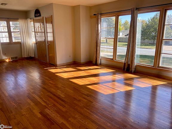 Move in ready! Come check out this 3 bedrooms with beautiful hardwood floors, plus built ins in bedroom and hallway. Updated bathroom. Fresh paint throughout. Lower level is partially finished with rec room are, bar area and 3/4 bath. New electrical panel in 2021, new lighting in basement. Spacious 3 stall garage with two overhead doors. Hanging furnace in garage is "as is" seller has never used. Nice back yard with playset.Per previous listing, the shingles were new at the time the seller bought the home. (2021). Great opportunity to call State Center home!
