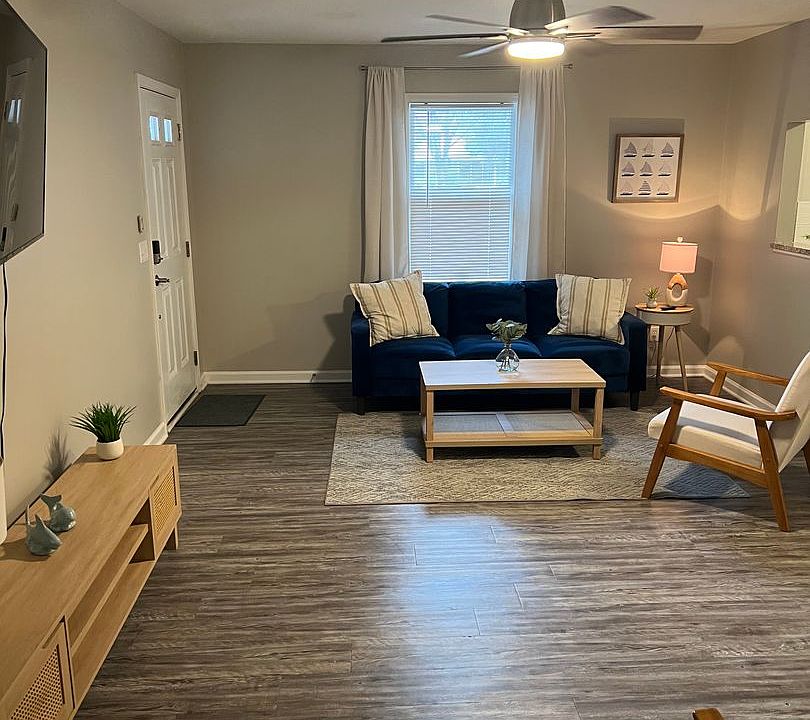MOVE IN READY! Experience relaxed coastal living in this fully furnished 2-bedroom, 1.5-bath unit located just steps from the ocean. This bright and inviting home features a spacious living area with comfortable furnishings, a well-equipped kitchen stocked with essentials, and a charming private balcony off the primary bedroom where you can unwind and enjoy the fresh sea air. Both bedrooms are designed for comfort, making the space ideal for traveling nurses or professionals seeking a quiet, move-in-ready home. Water is included in the rental rate, adding simplicity to your monthly expenses. With its close proximity to the beach and nearby amenities, this home offers a perfect blend of comfort and coastal convenience.