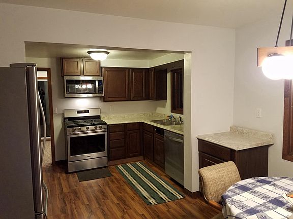 Three bedroom house in a quiet neighborhood. Close to a bus stop and a biking trail. It has a large unfinished basement. with four spots for off street parking. There is a shed on property for out side storage. Tenant responsible for all utilities. 1 year lease preferred. No smoking. Tenant responsible for lawn care and snow removal. Washer and dryer on first floor - No extra charge Two bedrooms upstairs one room on the main floor Bathroom upstairs Basement unfinished River in the back yard All appliances are stainless and newer Pet friendly Tenant responsible for all utilities. 1 year lease preferred. No smoking. Tenant responsible for lawn care and snow removal.