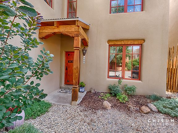Come explore Puertas Pintadas, a townhouse development that evokes the charm of a small Northern New Mexico village. Tucked among large cottonwood trees and boarding the Rio Fernando, this development provides a quiet retreat while being only a short walk to the Historic Taos Plaza. This townhouse blends many southwestern and modern features, providing a unique experience and charm. The large vigas, latillas, saltillo tile flooring, carved spiral posts and corbels, colorful tile and Kiva wood burning fireplace grounds this home in southwest design while the R-30 2X8 walls, radiant floor heating, stainless appliance, and plaster walls provides the modern features we can't live without. The great room is stunning with its tall ceilings, large artist windows and french doors that lead out the to a private portal and backyard. The first floor also has the first guest bedroom, full bath, entry way and a 1 car garage. The upstairs features the second guest bedroom with ensuite bath, laundry area and a master suite with walk-in closet and ensuite bath. The beautiful furnishings in this home are negotiable. Come see why people fall in love with Puertas Pintadas.