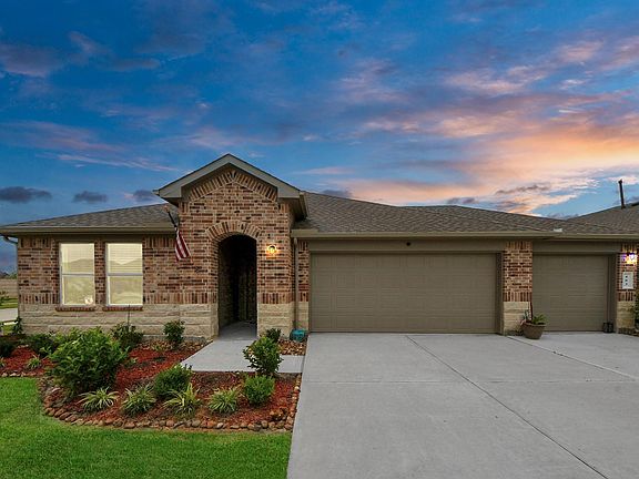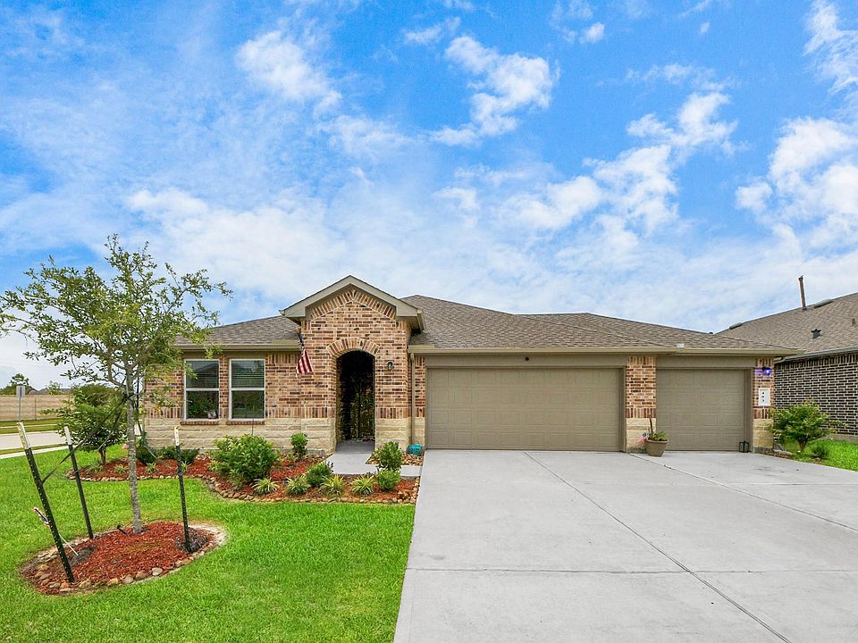 Welcome to this stunning 1-story home with 4 bedrooms, 3 full baths, and a home office/study, built in 2023. The kitchen boasts a large island with quartz counters, open to the spacious living room with a charming faux brick accent wall. Relax on the covered patio and enjoy your fenced back yard. With a 3-car garage, there's plenty of room for vehicles or storage. Situated on a corner lot off Hwy 146 with easy access to 99, I-10, and Hwy 90. Enjoy community amenities like the Angel Lagoon, parks, and dog park. A perfect blend of comfort and convenience awaits you here.