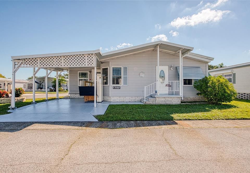 Welcome to your new home in the highly sought-after 55+ Gull-Aire Village! Perfectly situated on a spacious corner lot, this charming Jacobsen manufactured residence offers both comfort and convenience within walking distance to the community pool and clubhouse. Constructed in 1993, it features durable ¾ inch plywood subfloors with laminate, carpet, and tile flooring throughout. Enjoy the versatility of the enclosed Florida room, equipped with central air and heat as well as a custom fan system—ideal for hobbies and creative projects. Recent upgrades include a new hot water heater installed in 2018 and beautifully renovated bathrooms completed in 2020. Further improvements include new windows, a front door, siding, and insulation added in 2013.The kitchen is outfitted with sleek 2019 stainless-steel appliances including a refrigerator and dishwasher. A new air conditioning system installed in 2016. Unique to this home is an electric custom ramp capable of lifting to 600 lbs., offering exceptional accessibility for those with mobility needs. A roof-over was added in 2005, and an inside laundry area comes complete with a washer and dryer for your convenience. The vibrant clubhouse is the heart of the community, hosting monthly events and providing amenities such as a pool table, shuffleboard, bocce ball court, and a heated pool and spa. There are also regular activities to keep you engaged and active, including yoga, bingo, cards, and line dancing. The golf cart-friendly streets make getting around a breeze! With HOA fees at just $60 per month, you will enjoy affordable living in a wonderfully maintained neighborhood. This pet-friendly community allows one pet of any size, and a second pet is permitted with a doctor's note for emotional support. Best of all, ownership includes the land—no lot rent! Everyday conveniences are just steps away, with AMC Theatres, Bealls, Marshalls, PetSmart, Five Below, and Dollar Store across the street, as well as popular dining options like Shaker & Peel, Craft Street Kitchen, Mandola's, Country Pizza Italian Grill, and Eve's Family Restaurant. Major retailers such as Super Walmart and Publix, along with Countryside Hospital, are only minutes from your door. For outdoor enthusiasts, the stunning beaches of Honeymoon Island and Caladesi State Park are just ten miles away, and a scenic biking and walking trail along the canal offers easy access from within the community. Room sizes are approximate. Do not miss your chance to enjoy the best of Oldsmar living in one of the area's most desirable communities!