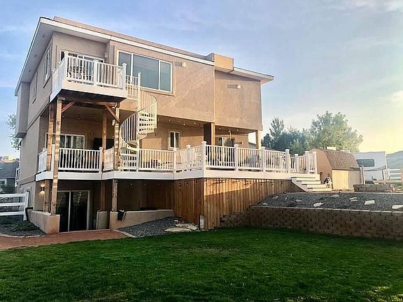 This home features 4 bedrooms plus an office, 3.5 bathrooms, formal dining room, living room, family room, & attached 2-car garage. This home features 7 skylights, 18 low E windows and sliding glass doors that make this home is a virtual greenhouse. Radiant in floor heating at all levels including the roof deck and a strategically placed evaporative cooling system creates an economical and unparalelled level of comfort throughout. Nicely updated with tiled floors, new carpet, new interior paint, stainless steel appliances, gas fireplace, wet bar in family room, 5-piece master bathroom, walk-in closets, roof top deck, & so much more! Huge fenced back yard with multiple decks & storage shed. Great location in premier Cobblestone Ridge neighborhood of Redstone.
