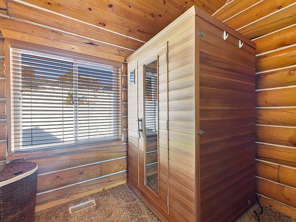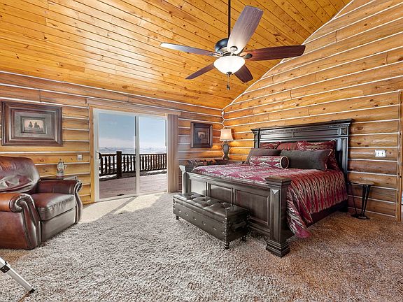 Log cabin home and oversized 2 car,detached garage sit on 2 adjacent lots. Common area below, so it will never have obstructed lake views. Professionally decorated.