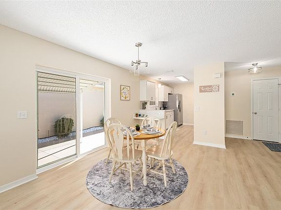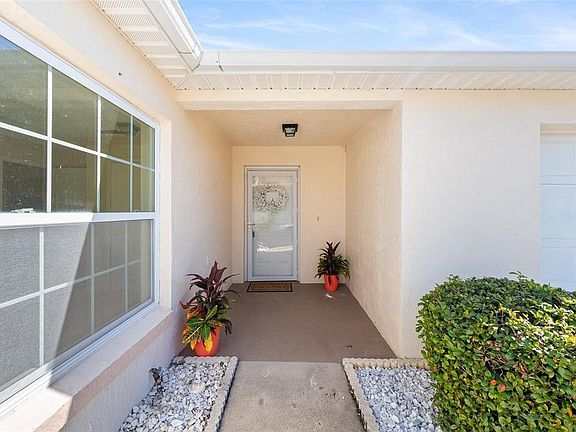 NO BOND! BEAUTIFULLY UPDATED, low-maintenance BLOCK & STUCCO 2-bedroom, 2-bath BAJA COURTYARD VILLA located in the desirable De La Vista South Villas. This charming villa offers an ideal blend of comfort, privacy, and convenience, perfect for seasonal living, full-time residency, or investment. Step inside the bright OPEN FLOOR PLAN and you’ll immediately notice the LVP flooring flowing throughout the main living area and kitchen. Freshly painted neutral walls that create a clean, move-in-ready feel. The UPDATED kitchen boasts white cabinets, GRANITE countertops, TILED backsplash, NEW SS appliances, and a pantry, providing both style and efficiency. The guest bedroom includes a built-in closet and is conveniently located next to a hall closet and the UPDATED guest bathroom featuring a NEW vanity, TILE floors, and a tub/shower combo. The primary bedroom features a walk-in closet, an UPDATED en-suite bathroom featuring TILE floors, a walk-in shower, and a NEW vanity. Just off the living room, the LIGHT & BRIGHT, TILED FLORIDA ROOM provides valuable bonus space—ideal for a den, office, hobby room, or relaxation area. Step outside to the very LARGE, private, low-maintenance courtyard, offering ample space for entertaining, grilling, gardening, or simply enjoying Florida’s beautiful weather. Additional features include: HWH (2025), HVAC (2025), Windows (2011), NEW slider doors inside, NEW light fixtures & fans, and freshly painted garage floor. This villa is centrally located near everything The Villages is known for! You’re less than three miles from the hospital and numerous medical facilities, and just minutes from popular amenities such as Hacienda Hills Golf Club, Tierra del Sol Golf & Country Club, La Hacienda Regional Recreation Center, Chula Vista Recreation Center, Rio Grande Family Pool, and the US Hwy 441 Medical/Commercial Corridor. Enjoy quick access to shopping, dining, medical services, and recreation—all just steps or a short cart ride away. Best of all, you’re only a 10-minute golf cart ride to Lake Sumter Landing or Spanish Springs Town Square, making this an unbeatable location for entertainment and convenience. Don’t miss this opportunity—schedule your private showing today!