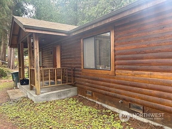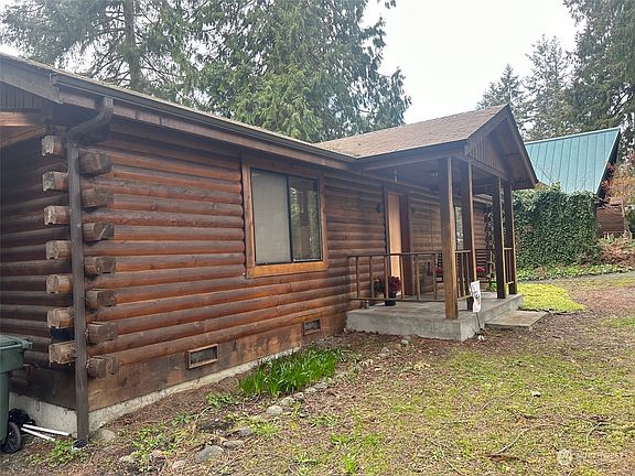 Authentic Pan Abode log cabin on a wooded site with a riverfront trail and dike between the house and the Dungeness River. The front yard is wooded and the back yard has flat lawn with a circle of trees between house and river. You have two large bedrooms, one full bath with washer/dryer. Open style kitchen with vaulted ceiling and appliances are included. Newer vinyl plank flooring in living room, vinyl in kitchen and carpet in bedrooms. Garden storage attached to the house. Yard is big enough for games. Conventional septic favorably inspected April 2024. Community water included with monthly HOA fee of $315/quarterly which also includes community amenities: Clubhouse, outdoor pool, 9 hole golf course and trails along the river dike.