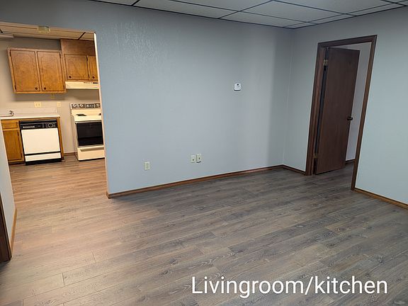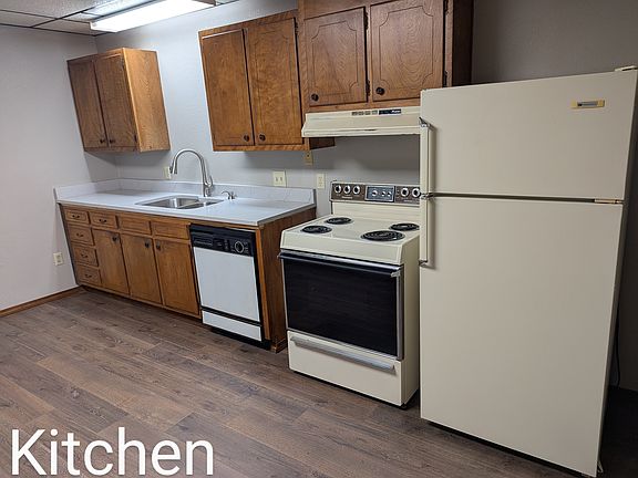 Beautifully newly remodeled apartment. Only big enough for 2 people (total). New laminate wood like flooring. Refrigerator (has ice and water on the door), dishwasher, garbage disposal, and stove. Central heat and air conditioning. A washer and dryer are incuded - but, only for as long as they last. Landlord will not replace them if the washer and dryer break. The apartment is super clean and only blocks from the college, restaurants, and stores.