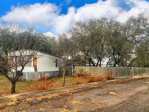Very well maintained 1064 Sq Ft 1988 3/2 River Cove Mobile Home with an additional 384 Ft of Porches sitting on a double corner lot one block from Nueces Canyon Elementary. The interior of the home has been meticulously cared for by the owner with touches like added storage, fireplace, master bedroom with a double closet and oversized tub. The 15,000 Sq Ft yard +/- well is established with Pride of Barbados, Roses, Grapes, Wisteria and Several Fruit Trees. There are two outbuildings one houses a meat processing, canning, storage and work shop area. The other a game room with wet bar. Come kick back and enjoy this slice of the Texas Hill Country. $75,000.00 Shown by appointment only.
