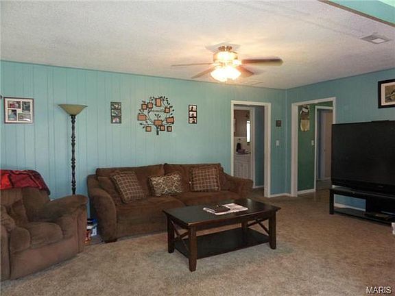 Perfect home suitable for family or someone settling down. Everything on one level with three bedrooms and two full baths. Updates throughout this property make it move in ready. Kitchen has been remodeled with painted cabinets and updated counter tops. All appliances will convey offering a range, refrigerator, and a dishwasher. Tile entryway was added off the front entrance. Spacious living room with nice carpeting and double door access to the large master bedroom suite. Two additional bedrooms with a bath in between and separate laundry area are a plus. You will enjoy the large 2 car garage with automatic opener and additional parking in the drive. Freshly painted exterior and new overlay on the roof!