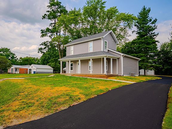 Beautiful, completely new, updated home! Quality built home with solid surface counter tops in kitchen and quartz in bathrooms. This home has so much to offer. New from the studs out. All newly encapsulated basement area with French drainage system, all new electrical, plumbing, furnace and central air, new siding, concrete porch with new sidewalks new roof and gutters with gutter guards, asphalt driveway and appliances. Three bedrooms with two full bathrooms, laundry room on the main level. Plus a two car detached garage. All on half an acre! Agent related to seller.