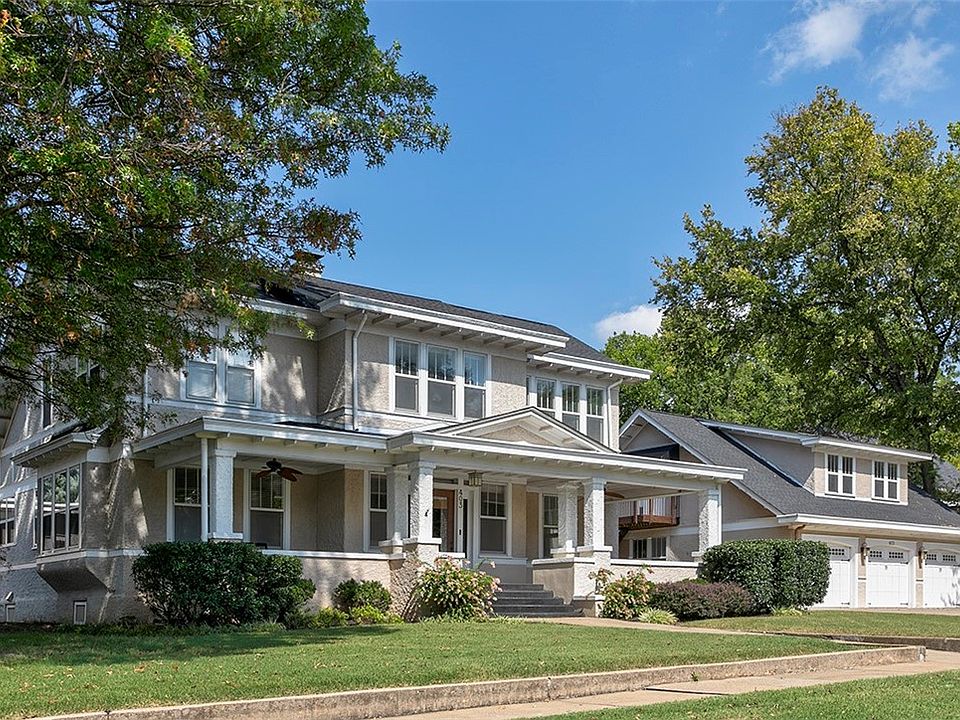 Majestic 1915 Crartsman in the heart of Siloam Springs. This is one of three Siloam Springs homes designed by a prominent Tulsa architect in the early 1900’s. It features a spacious front porch, leading to original patterned oak floors, large dining room and adjacent living room. There is a private den, with built in cherry bookshelves, adjacent to the large laundry room which features a dumbwaiter laundry lift. There are 5 bedrooms, and 3 bathrooms. The kitchen is updated with cherry cabinetry, gas cooktop, large pantry, with an adjacent breakfast room. The interior walls are origial plaster, and the exterior is original stucco.