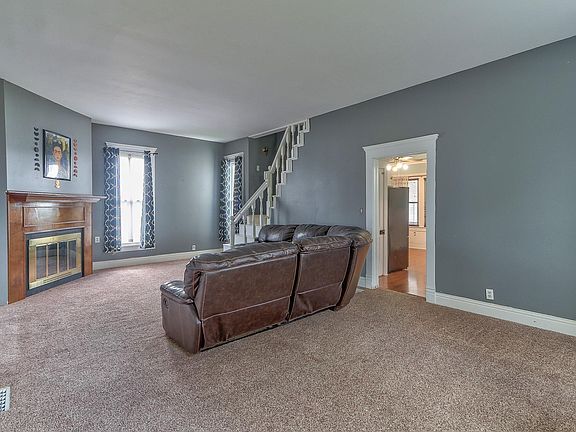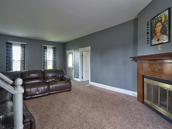 Welcome to this charming 2 bedroom, 1 bathroom home, ideally situated in the heart of Fort Branch, just moments from schools and convenient shopping. The main floor features 9-foot ceilings and large windows that flood the home with natural light. Enter through the covered front porch into a spacious living area with a cozy wood-burning fireplace. The kitchen is equipped with stainless steel appliances and ample tall cabinetry for storage. Adjacent to the kitchen, a versatile room serves perfectly as a walk-in pantry or extra storage space. The primary bedroom, located at the front of the home, offers a walk-in closet for added convenience. The main floor bathroom includes a shower/tub combo, providing functionality and comfort. Upstairs a bonus room, previously used as a second bedroom, offers flexible space along with additional attic storage. The unfinished basement includes a laundry area, as well as a roughed-in option for a second bathroom, with a separate exit leading to the spacious backyard. Completing the property, a detached three-car garage offers abundant space for various uses, making this home both practical and charming.
