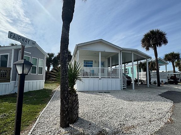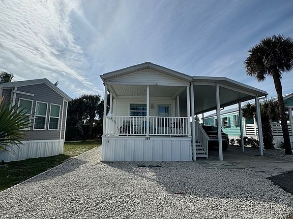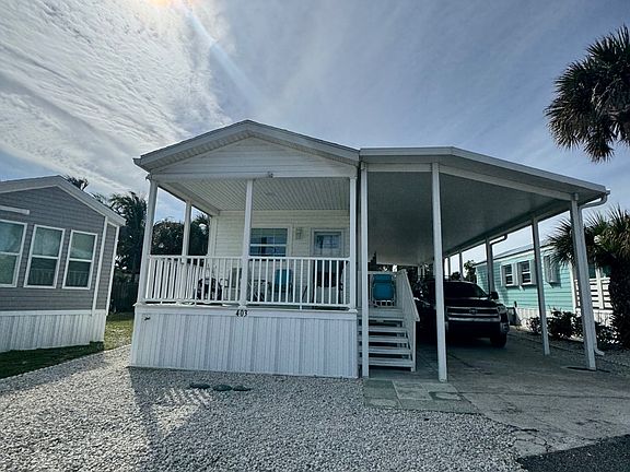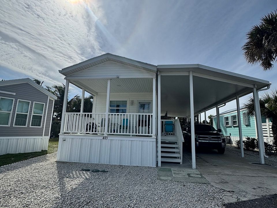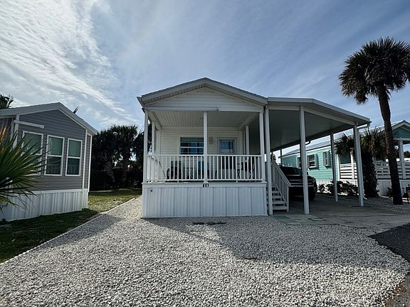 Welcome to this newer 2023 manufactured home featuring 1 spacious bedroom and 1 full bath, with exciting potential to add a second bedroom the current owner had already started planning the project before deciding to sell. This home offers great flexibility and endless possibilities to make it your own! Enjoy the oversized carport with a tall ceiling, perfect for parking, storage, or even creating an outdoor workshop area. Relax on your front patio with a direct view of the sparkling ocean right across the street the perfect spot for morning coffee or evening sunsets. Nestled in one of the best 55+ active adult communities in Melbourne Beach, this home combines comfort, location, and lifestyle. Residents here love the gentle sea breeze, tropical surroundings, and unbeatable year-round weather that makes Melbourne Beach a true Florida paradise.Whether you're a seasonal snowbird or looking to enjoy full-time coastal living, this home offers the ideal balance of relaxation and convenience just steps from the ocean! Thank you!