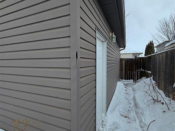 Excellent family home on a Corner lot location in Stonebridge. Interior recently professionally painted and deep cleaned throughout. Quick possession available of this 1358 SF Two Story with large double detached garage with remote opener. The second level has 3 spacious bedrooms and a full bath while the main level has a 4th floor bedroom which could also be used as a private study/office space. Lots of kitchen cupboard space and a walk-in pantry. Appliance package can be negotiated into the price for mortgage purposes. The large breakfast Island doubles as an added food prep area for those who love to bake or cook. Features: Newer Laminate on both levels, Central Air Conditioning, Roughed In (RI) Central Vac, an attached raised deck with metal railing and a low maintenance Fully Fenced yard. Basement is wide open for future development. Annual Inspection on high efficiency furnace completed in December of 2025. HE water heater is rented but will be paid out prior to new owner possession. The dining/living room provides direct access to deck and 2 car garage. Close to Schools, shopping and parks.