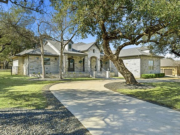 All the bells and whistles! Magic screens with remote control come down to completely enclose party size covered patio with gorgeous electric fireplace and built in gas grill plus wine fridge. Remote control window coverings. Plantation shutters, butlers pantry. Just driving up the circular drive to the front of this spectacular custom Clear Rock Homes home is a thrill! It is the highest point in the Woods of Westlake neighborhood. Beautiful Sunwood tile floors, super high ceilings, built ins include a butlers pantry, 2 exquisite fireplaces built into the walls in the living room and on the back patio. The kitchen is drop dead gorgeous with quartz countertops, 5 burner propane cooktop, built in oven and microwave, sharp looking porcelain farm sink, built in buffet area, the works! Formal and informal dining. 2 flex rooms an office and 2 rooms with bath for separate suite on opposite end from primary bedroom. Can easily be 5 bedrooms and still have office and flex space. 3.5 dream baths. Dynamite primary suite with super closet that holds 2 large dressers and wonderful shoe shelves plus ironing board. Lorax 8 security cameras stay with house as well as 2 TV sets, Whole house surge protection, Whole house generator, 3 car garage/workshop area. Fully drip lined garden with 4 raised garden beds. All on 1 level surrounded by Texas Oaks on over an acre!