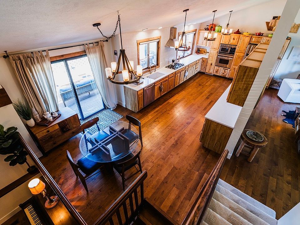 Freshly painted & updated Mid Century Modern style home with 3 bedrooms 2.5 bathroom, finished basement, laundryroom, and loft office space. New Floors, Sunken living room featuring a wood burning fireplace & New Mini bar, Updated Kitchen features quarts countertops, a 6 burner stove and a double wall oven. Lots of storange and additional closet space throughout the home. New AC installed.