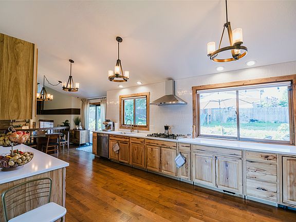 Freshly painted and fully renewed, this 3-bedroom, 3-bath home delivers 3,400 square feet of thoughtfully reimagined living space in one of Kalispell’s most desirable, convenient areas. Step inside and you’ll instantly notice the beautiful birch hardwood floors, custom Alder trim, and new plush carpet that creates a warm, cohesive feel throughout. Natural light filters through wood blinds, accentuating the home’s inviting design and craftsmanship. The kitchen steals the show with hickory cabinetry, Calacatta Seville quartz countertops, and a mosaic tile backsplash that reaches all the way to the ceiling. A clever pass-through window to the outdoor BBQ area makes entertaining easy and fun, while the 6-burner gas cooktop, Fireclay sink, and bronze fixtures highlight the home’s elevated finishes. A new Anderson slider opens to a private backyard retreat, complete with brick patio, garden wall, and a full sprinkler system for lush, easy-care landscaping. The yard has been leveled and improved for drainage—every upgrade done with intention. Both bathrooms feature updates throughout while the fully finished lower level and sunken den with wet bar offer flexible living and entertaining spaces. Every improvement—from design choices to structural updates—reflects care and quality that blends comfort, character, and convenience in a way that feels rare and just right.