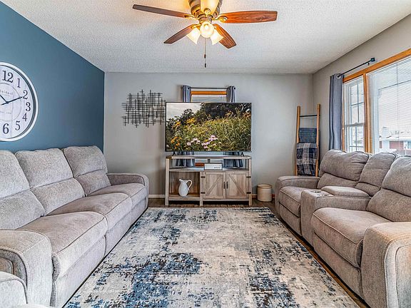 You're going to love this charming, turn-key ranch home in the heart of Grundy Center filled with quality updates! This well-maintained home features 2 bedrooms, 2 bathrooms & awesome outdoor living! You're welcomed by lovely curb appeal with a large front porch & landscaping. Inside, find a cozy living room with a large picture window. Hard surface flooring & updated windows throughout! The spacious kitchen features stylish gray cabinetry, breakfast bar, tile backsplash, updated appliances & a large dining area with room for a buffet. 2 generous-sized bedrooms, each with ceiling fans & ample closet space. The renovated upstairs bathroom boasts a new vanity with quartz countertop, tile backsplash & updated shower. The lower level offers a huge family hangout space perfect for game days & movie nights, a 2nd 3/4 bathroom, laundry and abundant storage. A highlight is the beautiful backyard living area with a large concrete patio with in-ground basketball hoop, completely fenced backyard with vinyl, privacy fence & storage shed. Enjoy being just steps from the Belpre Park with a playground & tennis/pickleball courts & a handful of blocks from Blue Ribbon Grundy Center schools. Truly a turn-key home ready to enjoy for years to come!