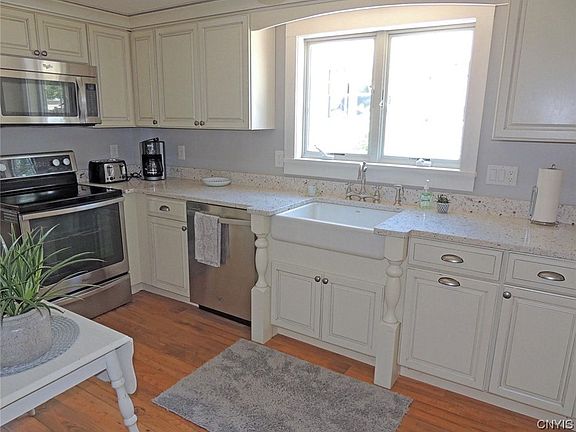 Beautiful 3bdrm 1bath 2,062 sqft village of Clayton Home. Property features a newly updated kitchen with quartz counter tops and stainless steel appliances, a walk-in pantry, large formal dining room and oversized living room. A gorgeous Florida sunroom to enjoy a good book or have your morning coffee. There is a huge master bedroom downstairs and a full bathroom with 2 more large bedrooms upstairs. Home has a walk-in attic and full basement. Property also has an attached studio apt., Airbnb, or mother-in law suite which a has a kitchen/dining room combo, full bath, living/bedroom combo. Outside there's a small patio area and a shed to keep all your outdoor lawn care items. Within short walking distance to downtown Clayton, St. Lawrence River, shops, dining and village park. Property has been an Airbnb for last 3 years. The rates were as follow: In-Season: 3 Night Minimum | Rates: $325/Night Weekdays, $425/Night Fri & Sat; Off-Season: 2 Night Minimum | Rates: $249/Night Weekdays, $295/Night Fri & Sat.