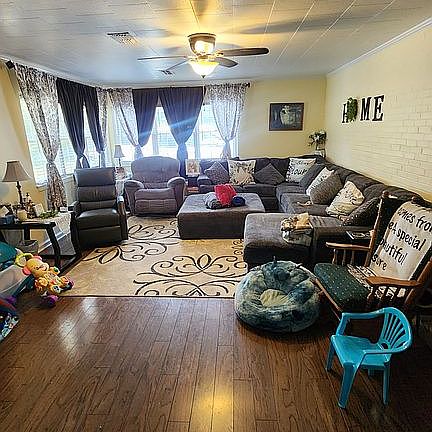 Brick homeFenced in yardLaminate and tile flooringCarpet in the bedrooms