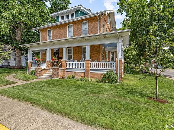 Welcome to one of Ste Genevieve's finest brick homes built by German craftsman in the heart of the downtown area. Step into the foyer area & notice high ceilings throughout the main level. Exquiste lighting throught. Plenty room for the whole family to gather in the living room & warm up around the cozy fireplace. Entertain on the holidays w/big family dinners in the seperate dining area. Kitchen features a breakfast bar & plenty of counter space. Sunroom off of the kitchen. Primary bedroom on main level. 3 additional bedrooms on the upper level which also includes a sitting area & 2 full baths. Many charming original features still remain throughout. Basement includes a family room, full bath, additional storage bonus room. There is main floor laundry and laundry in basement. Relax on the partial wrap around porch. Mature trees. Detached 2 car garage. So much more.