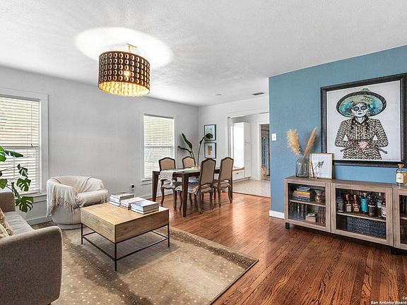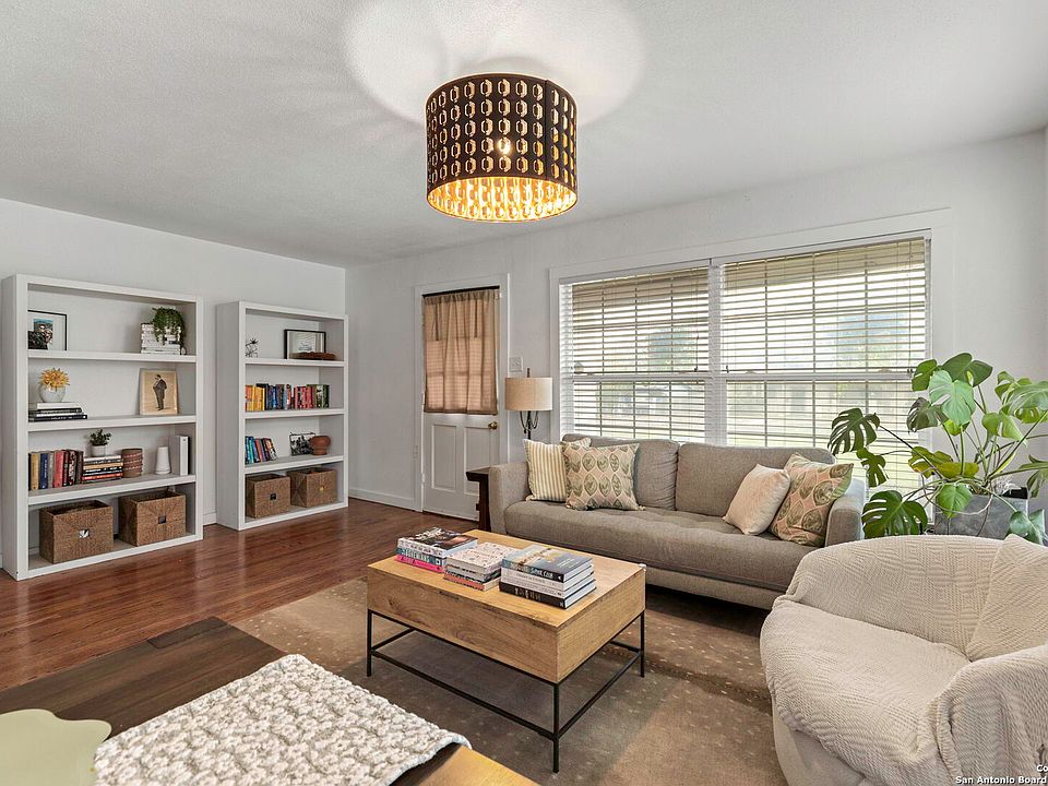 Welcome to this beautifully updated mid-century home, ideally located just around the corner from Fort Sam Houston and minutes from the airport, downtown San Antonio, and the Pearl. Offering both convenience and comfort, this property is perfect for those seeking a centrally located residence. Inside, you'll find an updated kitchen, original hardwood floors and tile throughout -no carpet anywhere. The home features two spacious living areas, providing flexibility for entertaining, relaxing, or working from home. Step outside to a covered patio, perfect for year-round outdoor enjoyment.