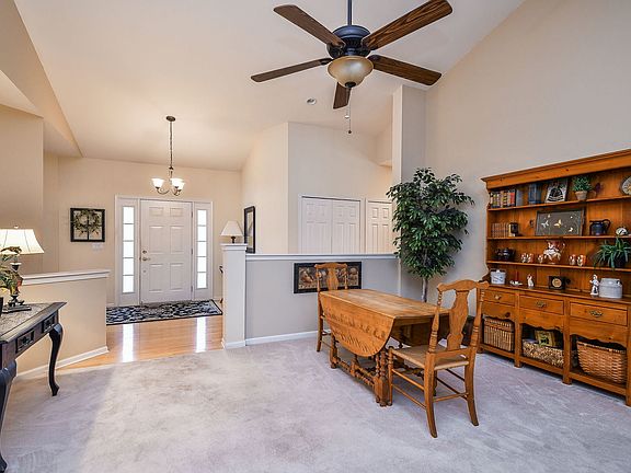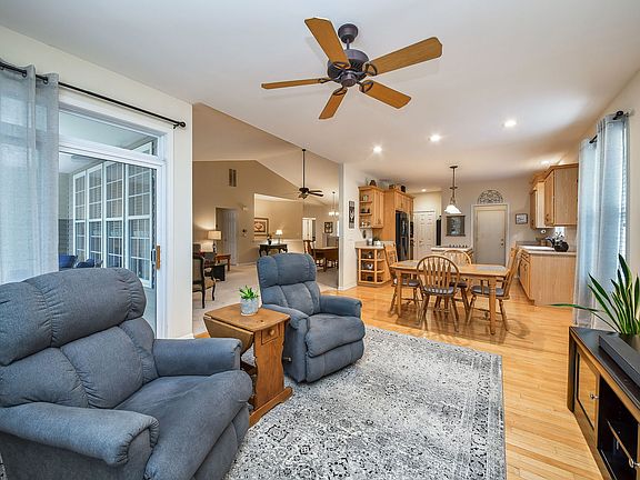 Beautiful home in River Run Club, an adult active community ~ the Easton is the largest model in the development and this home is loaded with builder upgrades ~ exterior elevation, pond view lot, enclosed screened porch, full look-out basement ~ Hardwood flooring, upgraded cabinets, corian counter tops, volume ceilings and lovely open layout ~ clubhouse and pool amenities ~ close distance to Fox River Trail, shopping and restaurants in Downtown Oswego ~ This one truly feels like home!