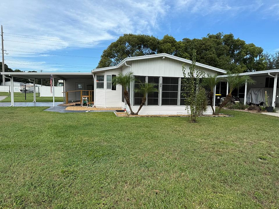 Located on an oversized, peripheral corner lot within a very popular and sought out 55 plus, gated community located in Auburndale, Florida. This cute home awaits your creative touch. The really well maintained home is freshly painted throughout and you will find newer carpeting in your master bedroom and living room. Your kitchen is spacious and bright with plenty of newer cabinets. Your kitchen countertops are complete with durable ceramic tile. You will also have tiled flooring in all of the wet areas in the home to include the kitchen and both bathrooms. Your spacious lanai over looks your well tendered landscaping. Newer, less than 5 year old, architecural shingles grace the roof of this home. A newer top of the line 3 Ton, TRANE HVAC system was installed on this home less than 3 years years ago. Giving you years of peace of mind, comfort and worry free roof and HVAC maintenance on this home. Should you want want to bring a beloved pets along, they can enjoy your extra large yard. Giving them ample room to roam and play in a spacious and safe setting. Our client is very motivated to sell this home and the home is priced to sell. Come see for yourself what an amazing home this really is. Give USA Mobile & Manufactured Home Sales a call and be sure to schedule a visit with us. We would love to show you around so you can take in all of the amenities that are also included within this friendly community.