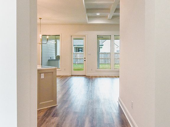 Stunning 3 Bed, 2 bath PLUS home office. Wide open Living/Kitchen/Dining w/ Custom Coffered Ceilings & Luxury Vinyl Plank Floors throughout! The Chef's Kitchen has Custom Cabinets, a Large Center Island, beautiful fixtures & High-End Quartzite Counters that are carried throughout the home. The Primary Suite is a dream w/ Cathedral Ceilings in the bedroom & Spa-like en-suite w/ dual sinks, standalone tub, huge walk-in shower & massive custom walk-in closet with direct access to the laundry room. 2 more bedrooms and a full bath complete the interior. Outside is a spacious covered patio w/ floor to ceiling outdoor fireplace & kitchen complete w/ grill & beverage cooler as well as a fully fenced backyard.