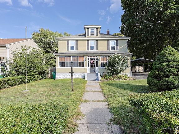 Lovely center hall hip roof vintage home, located near the center of town. Updated cabinet packed kitchen with atrium doors leading to deck and yard with above ground pool and 2 sheds for storage of bikes, toys and lawn care items.The rest of the first floor consists of a living room and connected dining room, a great space for holidays and entertaining. Den is a great quiet reading space. The first floor bath houses a laundry area. The front porch can be utilized for play or an extra space for plants. Heading to the second floor up the wide staircase there are 4 corner bedrooms. The second floor bath has a spa like stand alone tub and shower. Surprise! There’s one more level, a spacious bonus room, with some storage. It could be an office, gym, or great playroom, keeping toys stashed out of sight, or even an extra guest room. Hardwood flooring is found through out the home as well as retaining many original features and updates.This home is made for family enjoyment inside and out.
