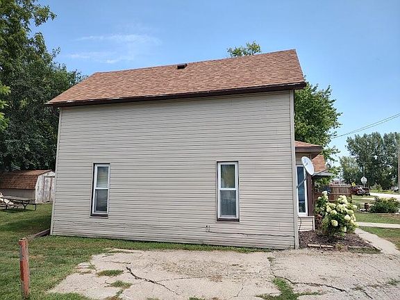 Comfy older home in quiet small town. Three bedrooms, one bathroom, large country kitchen. Newer roof, permanent siding, stove and refrigerator stay. Easy to heat and cool. Covered patio, one block from K-12 school, 35 minutes to downtown Omaha.