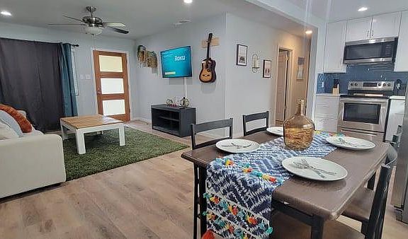 Location, location, location Gorgeous fully furnished 3 bedrooms and 2 baths with a 4th bedroom or study. The Master bedroom is huge with a walk-in closet. Completely renovated home from top to bottom. Over $90,000 in renovations. Tenant will have their own private patio and a paved on-site driveway. Updated stainless steel appliances. Owner pays for landscaping. Renter is responsible for water, gas, and electricity. Last month's rent is due at signing. No smoking allowed. Up to two small pets are permitted.