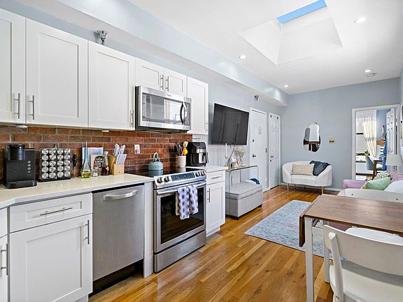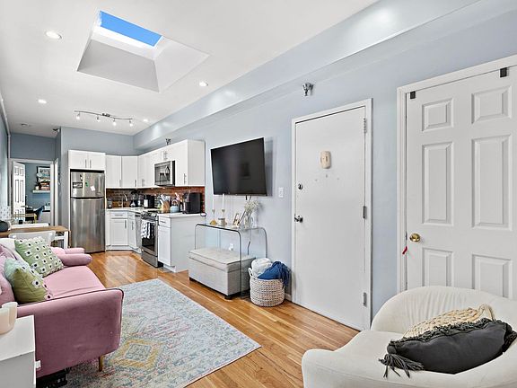 Welcome to 403 Monroe St #4L, a sun-soaked and updated 2-bed, 1-bath condo in the heart of Hoboken. This nearly 600 sf unit boasts a spacious split bedroom layout with ample storage, a modern kitchen and a private balcony. This unit has a long list of thoughtful updates including a newer water heater (2022), all new kitchen including cabinets, quartz countertops and appliances (2017-2024), skylight (2019), refinished floors (2017), and recessed lighting along with cosmetic updates like the brick-tiled walls, ceiling fans, window treatments and freshly painted. It’s ready for you to move right in! The 8-unit pet-friendly building (with building approval) also offers laundry facilities for added convenience.