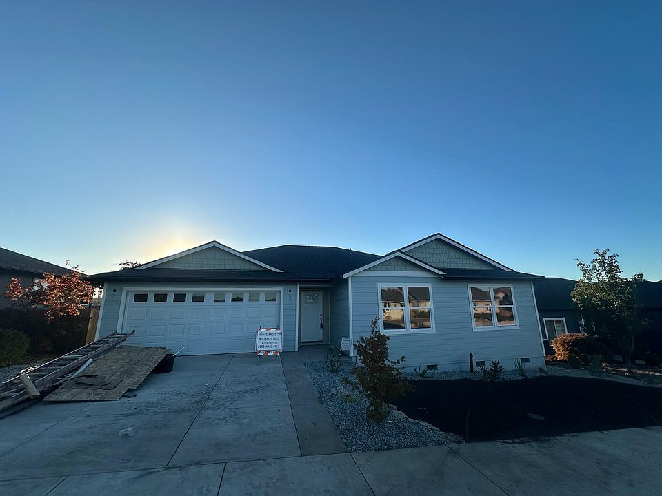 Brand new 2025 custom-built single level home with breathtaking views and a prime Eagle Point location. Snyder Creek Development presents this newly completed home filled with upgrades. The open floor plan showcases vaulted ceilings and panoramic views from nearly every room. Enjoy two spacious view decks off both sides of the living room and the primary suite. Features include an oversized finished 2-car garage, luxury vinyl plank flooring, upgraded fixtures, and custom soft-close cabinetry with granite counters. The kitchen offers stainless steel appliances, a walk-in pantry, and stunning views. The primary suite features dual sinks, granite counters, walk-in shower, and large walk-in closet. Energy-efficient ductless heating and cooling ensure comfort year-round. Outside boasts a landscaped front yard with sprinklers, fenced backyard, and two large decks for entertaining.